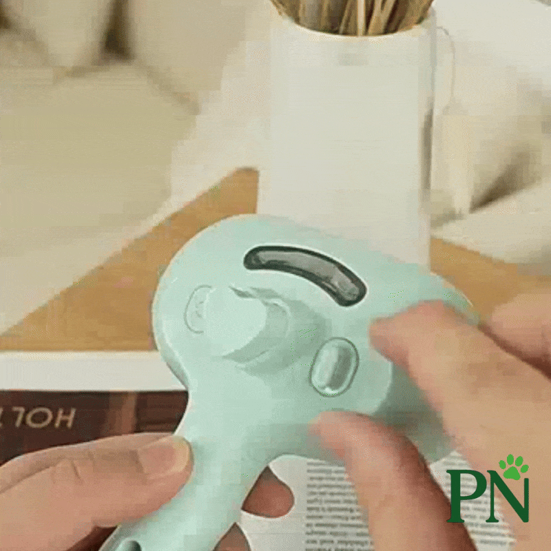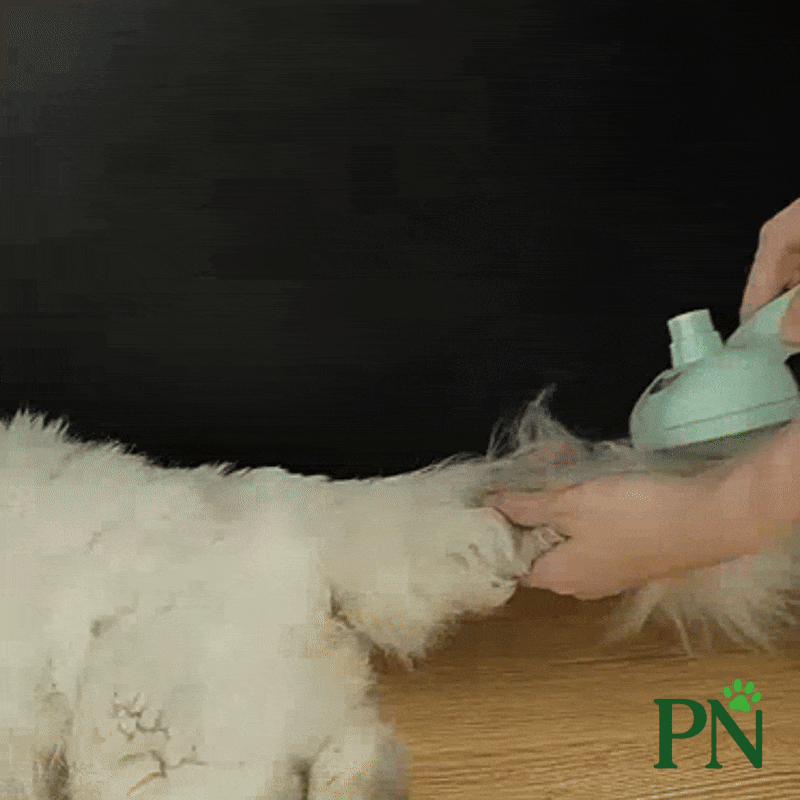 A contain-as-you-go grooming system — trapping loose fur inside the head before it ever hits your walls or floor.
