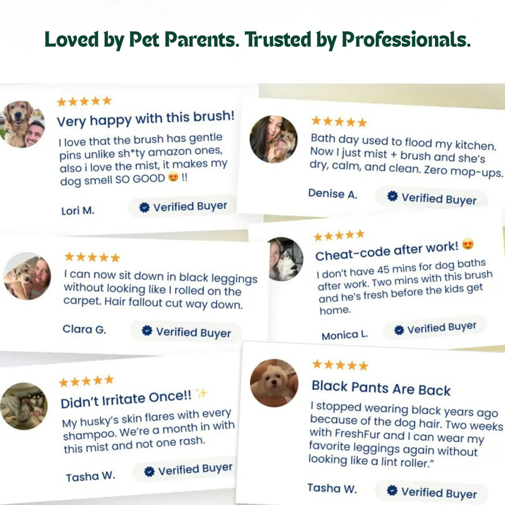 Real-home proof focus — owners hate the post-bath hair explosion more than the bath itself — we remove that.